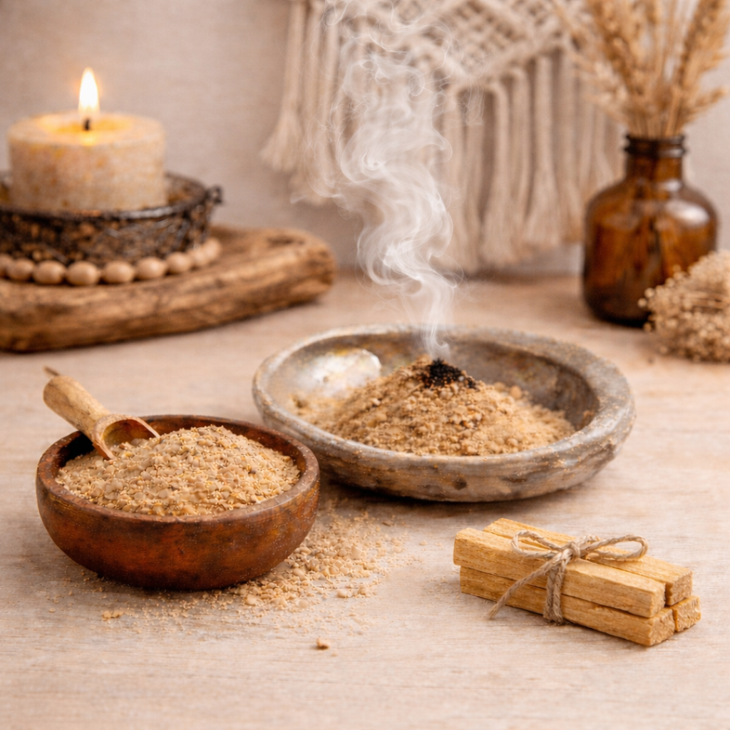 La fumigation à la poudre de Palo Santo est utilisée pour purifier l’énergie d’un espace, instaurer une atmosphère plus apaisée, accompagner des moments de recentrage et harmoniser un lieu de vie ou de travail.
